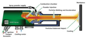 High Velocity Oxygen Fuel (HVOF)Â is a thermal spray process which combusts oxygen and flammable gas to provide a very high speed flame. Avweld use the latest HVOF system from Flame Spray Technology in Europe. This process provides extremely dense coatings with virtually no porosity.